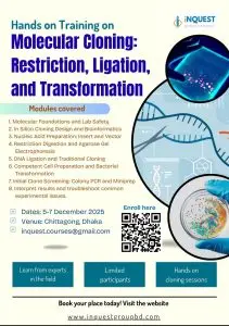 iNQUEST Updates List of all trainings Read More Molecular dynamics simulation Read More iNQUEST EduAid and Consultancy Services Read More Training for kids- Robotics for beginners Read More Training for kids- Coding for beginners Read More Special event with International Visiting Professor Dr. Probodh Borah, Assam, India Read More Hands on training course on “Prokaryotic Genome Assembly and Annotation” Read More Hands on Training on “Molecular Cloning: Restriction, Ligation, and Transformation” Read More Hands on Training on “Advanced Molecular Biology Tools, Techniques and Technologies” Read More Unlock the Power of Big Data with R Programming! Read More Whole exome sequencing (WES) data analyses Read More Short course on Epidemiology and Statistics for Public Health Read More Load More
